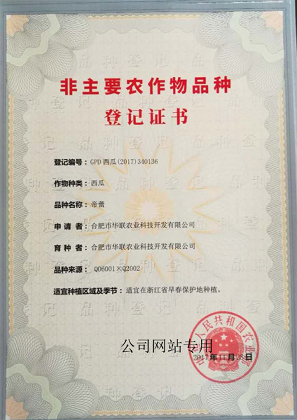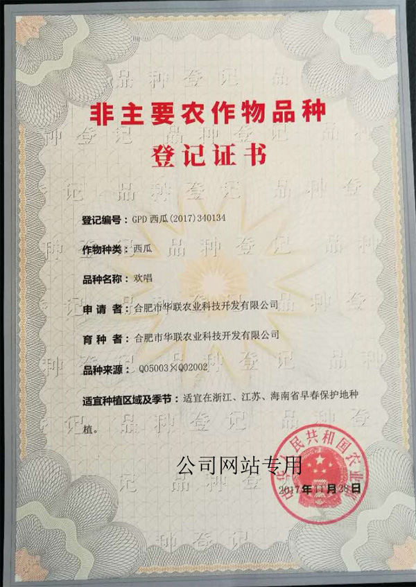 合肥市華聯(lián)農(nóng)業(yè)科技開發(fā)有限公司是一個(gè)以西甜瓜作物育種、制種、經(jīng)營為主的專業(yè)種子公司,注冊資金200萬元,成立于2001年,擁有“興農(nóng)、華聯(lián)、帝蕾、歡唱”等專有商標(biāo)。公司堅(jiān)持誠信務(wù)實(shí)的原則,按照市場經(jīng)濟(jì)規(guī)律運(yùn)作,實(shí)施品牌戰(zhàn)略。公司擁有豐富的種質(zhì)資源,穩(wěn)定的制種基地,完善的營銷網(wǎng)絡(luò),優(yōu)良的質(zhì)量信譽(yù),現(xiàn)已在全國推廣開發(fā)了西瓜、甜瓜和南瓜品種二十多個(gè)。